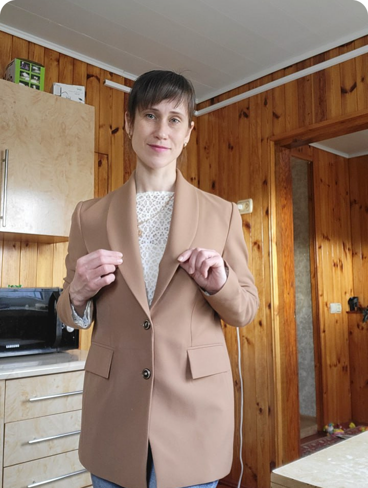 Привіт Іра! Щиро дякую тобі за цей курс, він був важким і цікавим навчанням. Дякую тобі за твій час, за доступні уроки. Я пишаюся що пошила піджак, це розкішна річ. Дякую тобі за усе❤️🥰