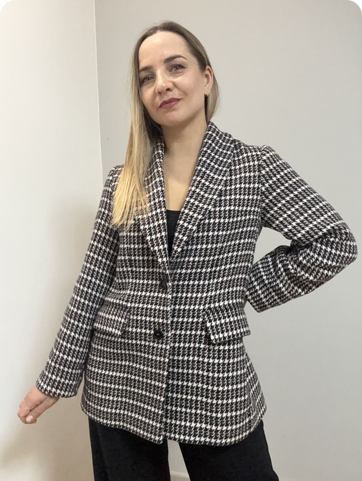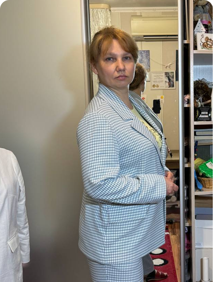 Курс «Піджак» став справжнім відкриттям для мене! Я давно мріяла навчитись шити піджак, але здавалося, що це занадто складно. Завдяки детальним поясненням, покроковим інструкціям і підтримці куратора Іри я з легкістю опанувала всі етапи — від зняття мірок до фінальної обробки. Особливо вразила увага до деталей: правильна посадка, обробка швів, формування рукавів— усе було на високому рівні. Тепер у моєму гардеробі є стильний, ідеально підігнаний піджак, зроблений власноруч! Курс не лише дав мені нові навички, а й додав впевненості у своїх силах. Рекомендую всім, хто хоче вийти на новий рівень у шитті та створити річ, пройти школу Ірини Антонюк.
